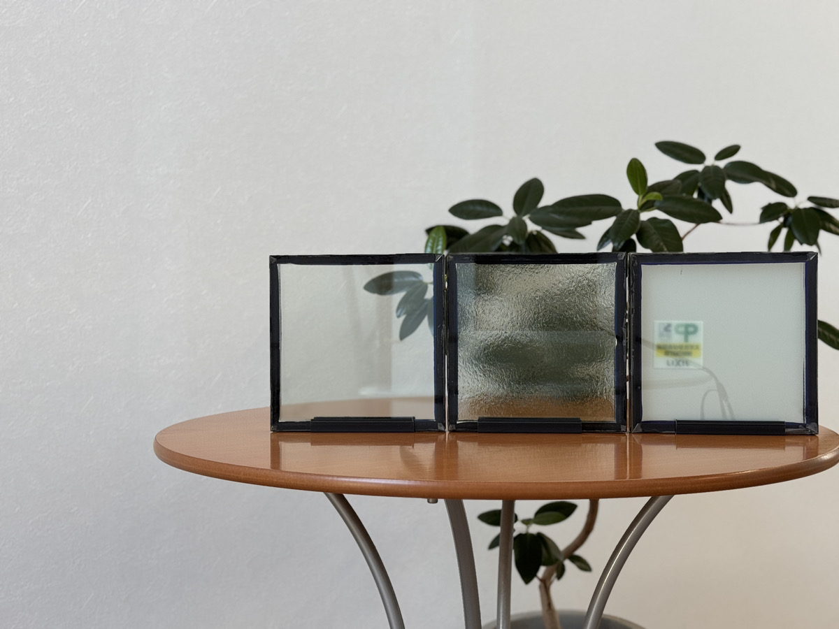 写真:(左から)透明ガラス、型板ガラス、フロストガラス